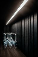 Der komplette Innenausbau wurde in enger Zusammenarbeit mit dem Kunden umgesetzt, inklusive einer beeindruckenden, schwebenden 8m-Sitzbank und einer maßgeschneiderten Küche.