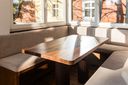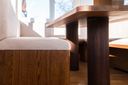 Ein Ort zum Innehalten. Diese Essecke ist als integraler Bestandteil der Architektur gedacht. Sie ordnet den Raum, definiert eine klare Zone und verbindet Nutzung und Gestaltung zu einer funktionalen Einheit. Massives Eichenholz, präzise geführte Linien und zurückhaltend gepolsterte Flächen bestimmen den Ausdruck. Konstruktion und Materialität sind bewusst reduziert. Übergänge, Radien und Fugen folgen einer klaren Logik und treten visuell in den Hintergrund. Das Tageslicht unterstützt die Wirkung der Oberflächen und verstärkt die ruhige, ausgewogene Atmosphäre. Das Ergebnis ist ein Essbereich mit architektonischem Charakter – langlebig, funktional und selbstverständlich im Gebrauch. Ein Projekt, das Handwerk und Gestaltung präzise miteinander verbindet.