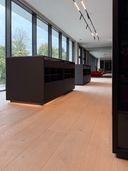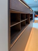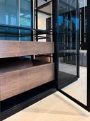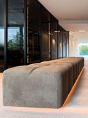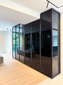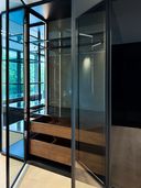 Diese Luxus Walk-in-Ankleide definiert modernen Luxus auf architektonischem Niveau. Großzügige Glasfronten in Parsol Grau, perfekt ausgerichtete Linien und ein durchgängiges Lichtkonzept formen einen Raum, der nicht nur genügend Stauraum bietet – sondern eine Bühne. Die raumhohen Türen wirken wie eine einzige, fließende Glaswand. Dahinter verbirgt sich millimetergenaue Maßarbeit, gebaut für Menschen, die kompromisslose Qualität erwarten. Der warme Naturholzboden setzt einen ruhigen, eleganten Kontrast zur klaren, grafischen Struktur des schwarzen Mobiliars und verleiht dem Raum Tiefe und Balance. Jeder Abschnitt, jede Fuge, jede Proportion ist bewusst gewählt. Die Inselanlage in der Mitte bildet das funktionale Herzstück und wirkt durch ihre schwebende Lichtkante fast skulptural. Das Ergebnis: eine Walk-in-Ankleide, die mehr Galerie als Garderobe ist – reduziert, edel und zeitlos. Ein Statement für Design auf höchstem Niveau.