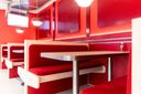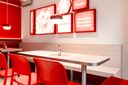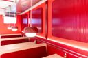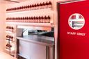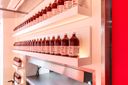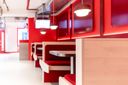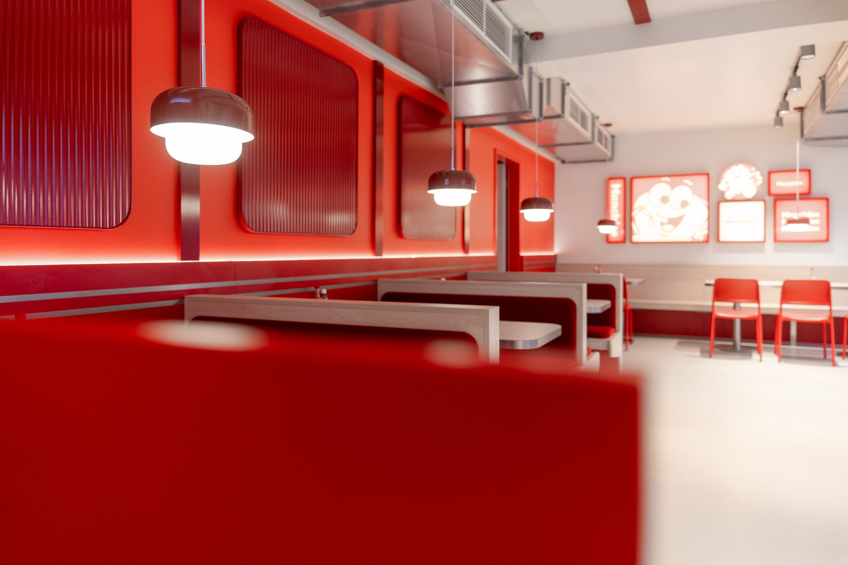 Das Interior von Munchies vereint starke Markenidentität mit klarer gestalterischer Haltung. In Zusammenarbeit mit dem Planungsbüro Konzept mit Kopf entstand ein Raum, der bewusst reduziert und zugleich ausdrucksstark ist. Monochromes Rot, präzise Linienführungen und industrielle Elemente bilden ein spannungsvolles Gesamtbild. Gerippte Wandflächen, offene Deckenstrukturen und fein abgestimmtes Licht sorgen für Tiefe und Charakter. Munchies, bekannt durch den Food-TikTok-Hype, überträgt seine visuelle Präsenz konsequent in den Raum – hochwertig, selbstbewusst und mit klarer Design-DNA.